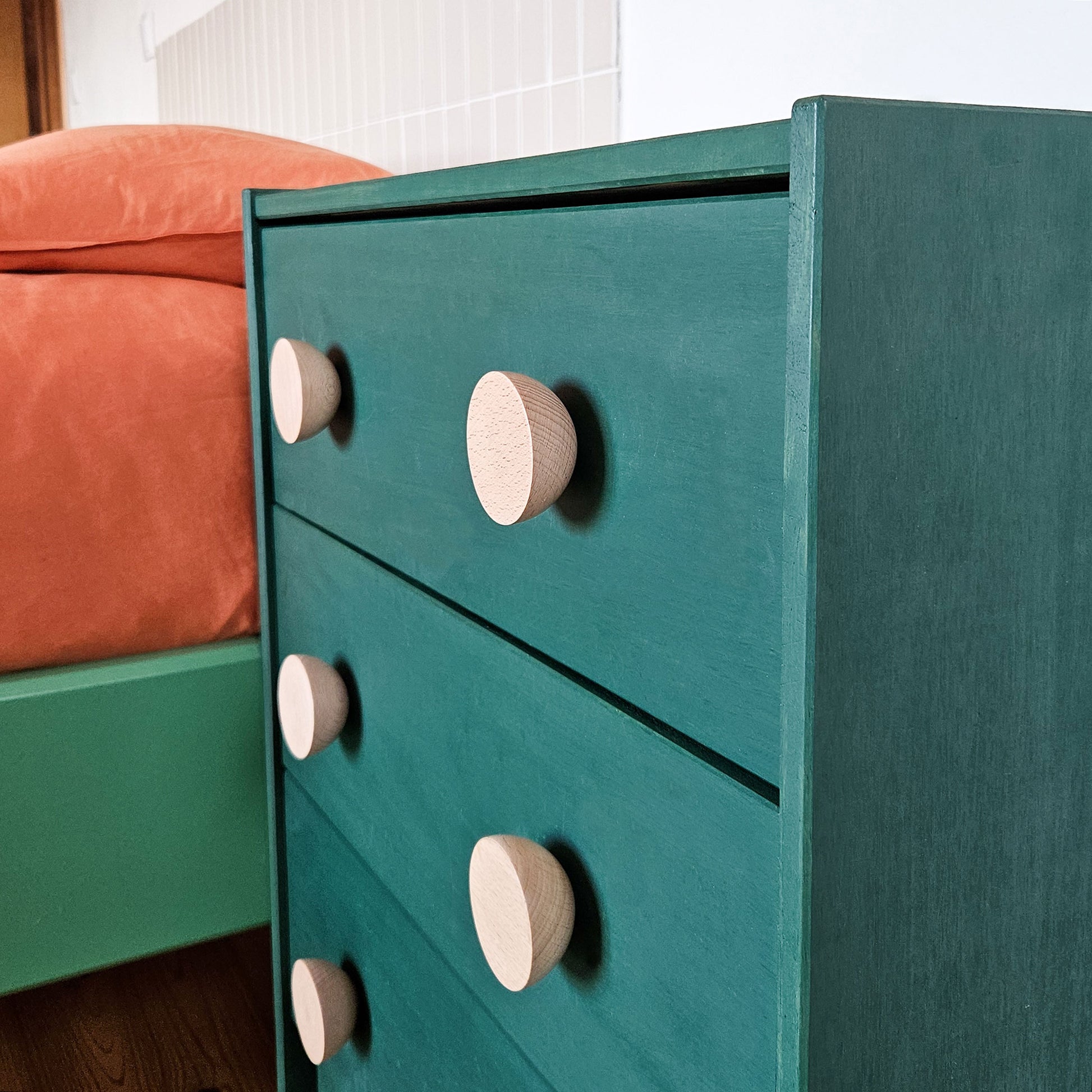 Größenoptionen - Der runde Kleiderhaken/-knauf aus Buchenholz ist mit 5 cm oder 6 cm Durchmesser erhältlich. Wechseln Sie zwischen beiden Größen, um einen verspielten Stil zu kreieren.