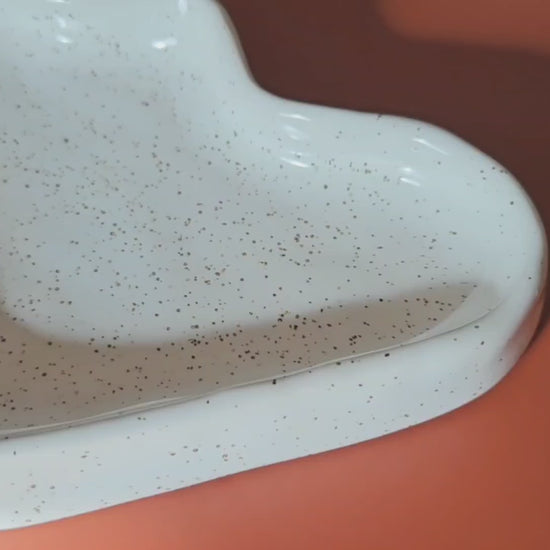 This ceramic wave tray is a playful accent to any modern interior. The ceramic trays are made in Portugal. The ceramic trays come in two shapes and are available in white, peach or blue speckled effect glazing.