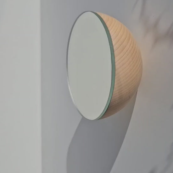 Round Beech Wood Wall Mounted Mirror Coat Hook