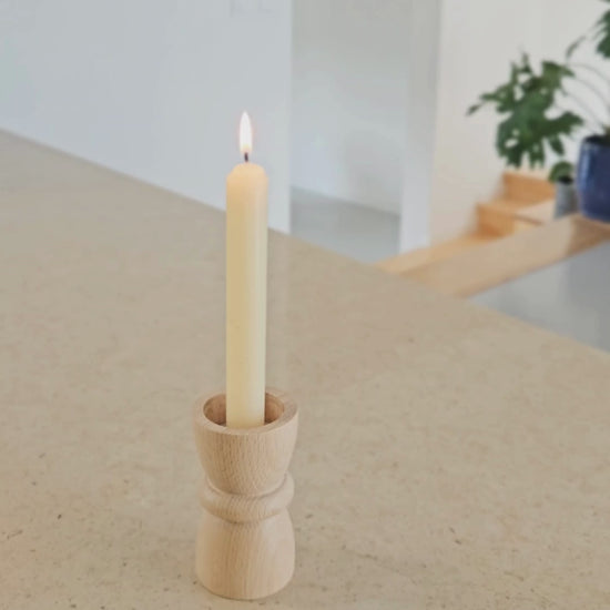 Each piece is hand-turned from beech wood in Portugal. Available in 3 different shapes in a pure beech wood or colourful handpainted version.